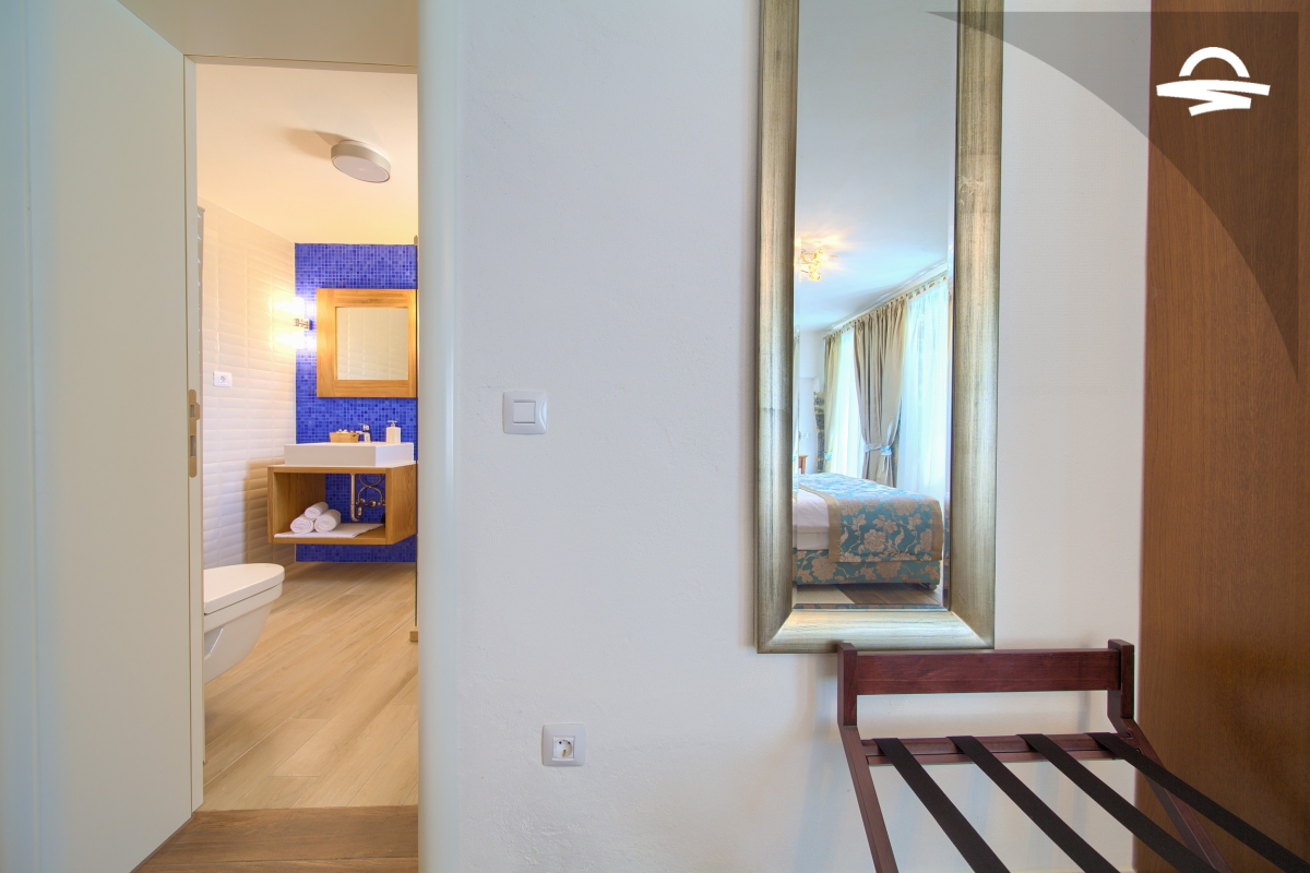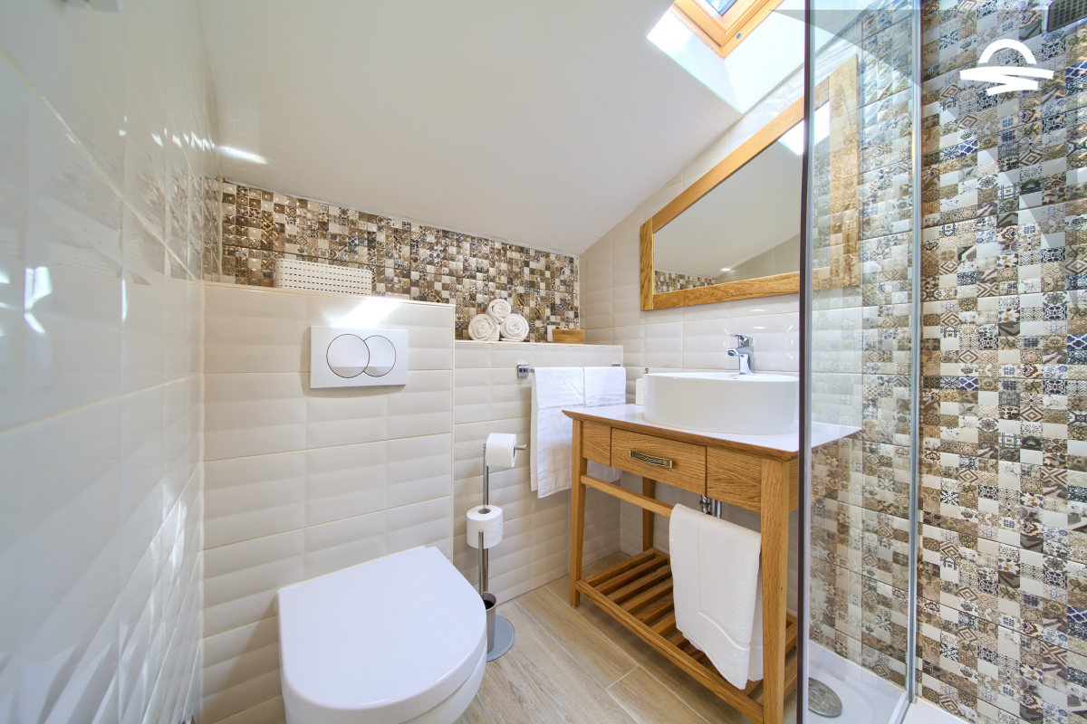 Im ersten Stock befinden sich zwei Doppelzimmer, beide mit eigenem Bad. Im zweiten Stock (Dachgeschoss) befinden sich zwei weitere Doppelzimmer, beide mit eigenem Bad. Eines davon hat eine Badewanne statt einer Dusche.