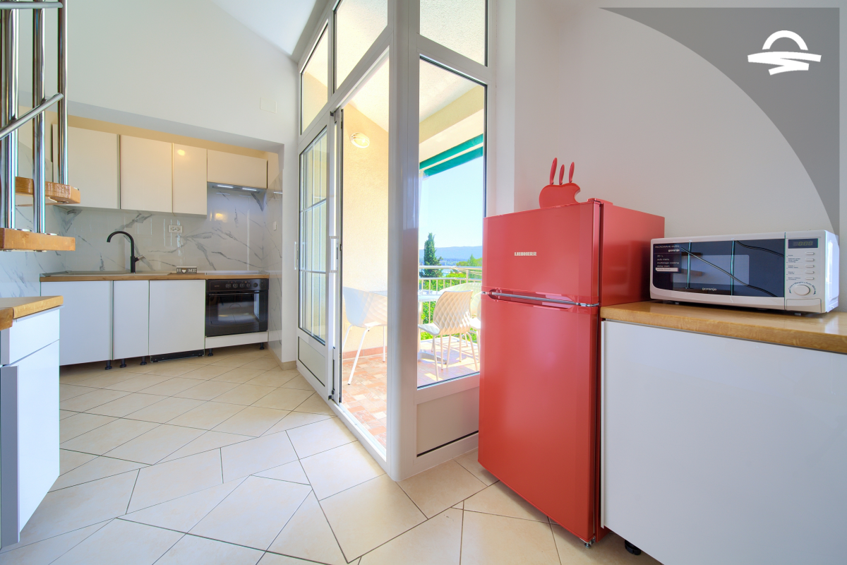 Diese moderne, helle und neu eingerichtete Wohnung Adria Danka 5 befindet sich auf der 2. Etage im Haus und ist nur 70 m vom Zentrum der Stadt Krk und 150 m von wunderschönen Kieselstrand "Porporela" entfernt .