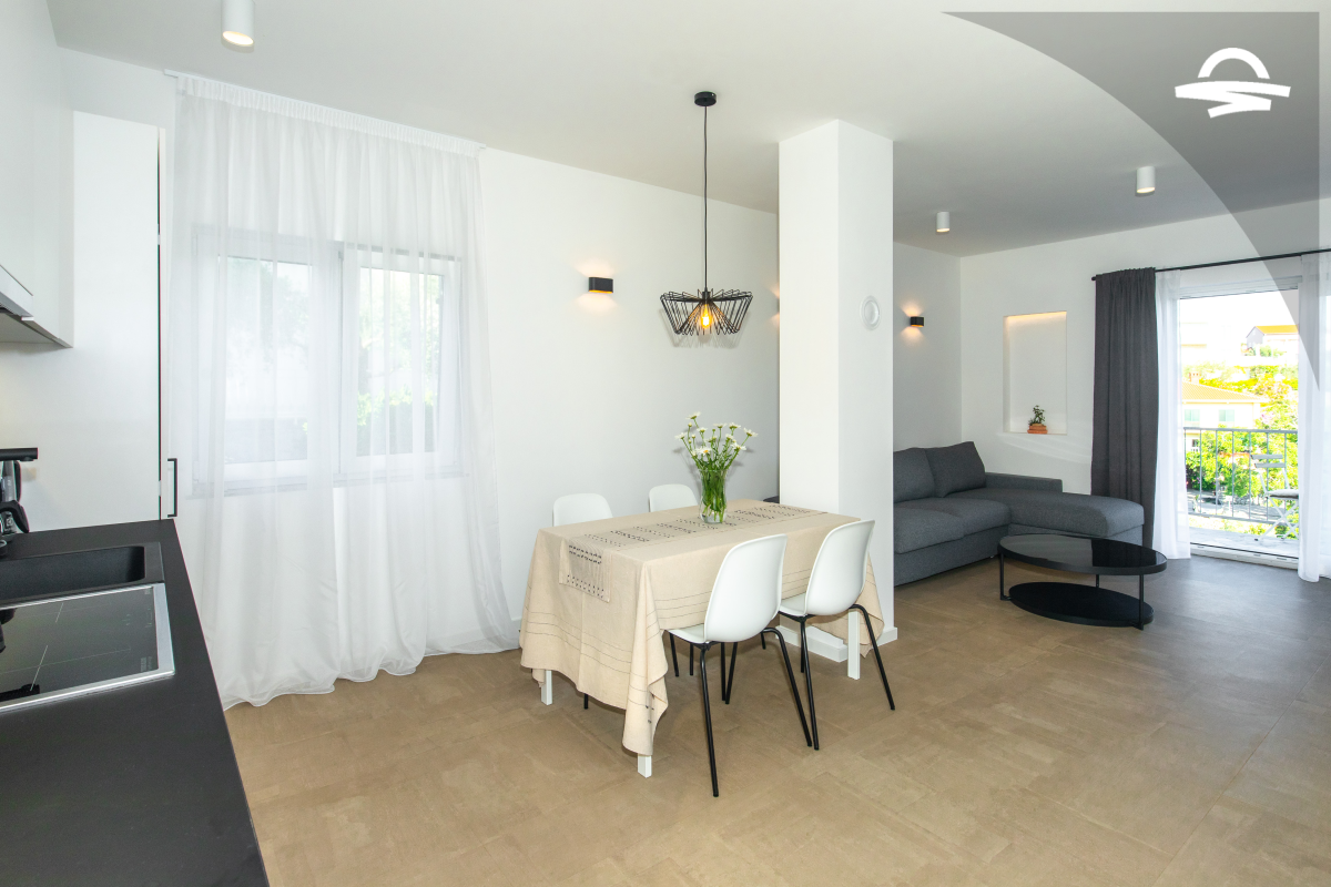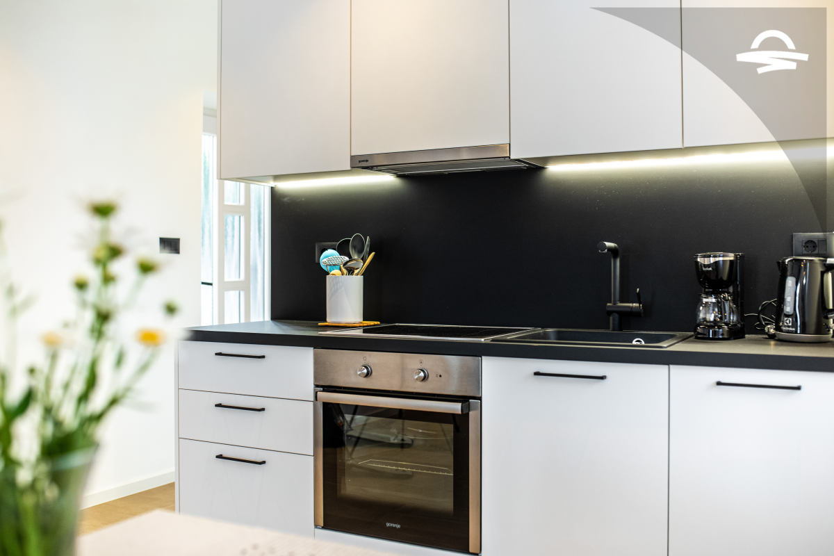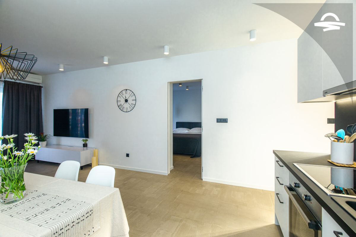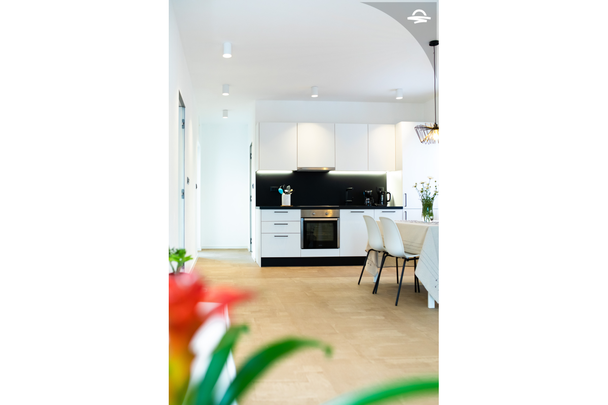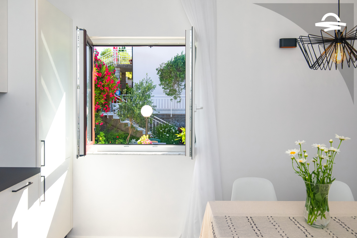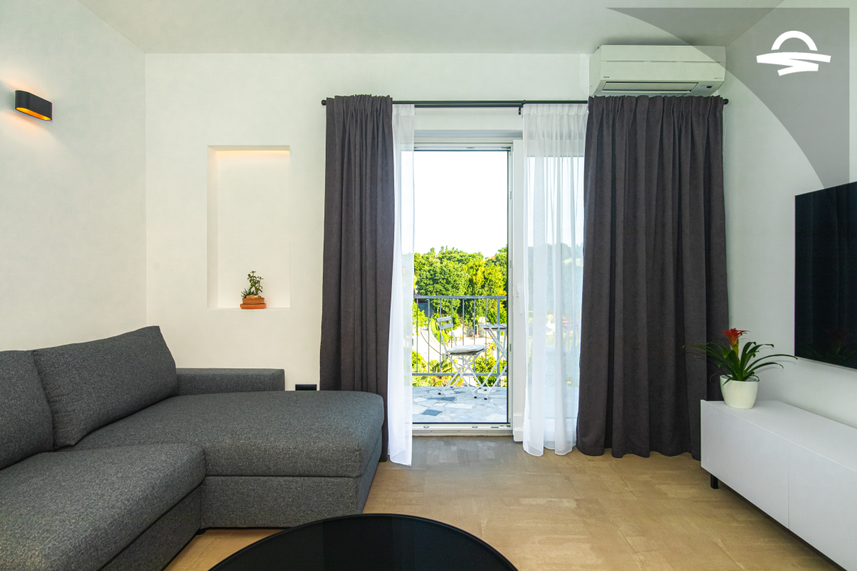 Die 50 m2 große Wohnung befindet sich im 1. Stock des Hauses und teilt sich in ein Schlafzimmer, ein Badezimmer mit Dusche und einen Wohnzimmer mit Küche auf. Vom Wohnbereich gelangt man auf den rund 11 m2 großen möblierten Balkon des Appartement von dem aus Sie eine fantastische Aussicht haben.