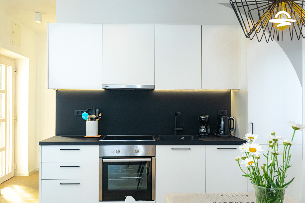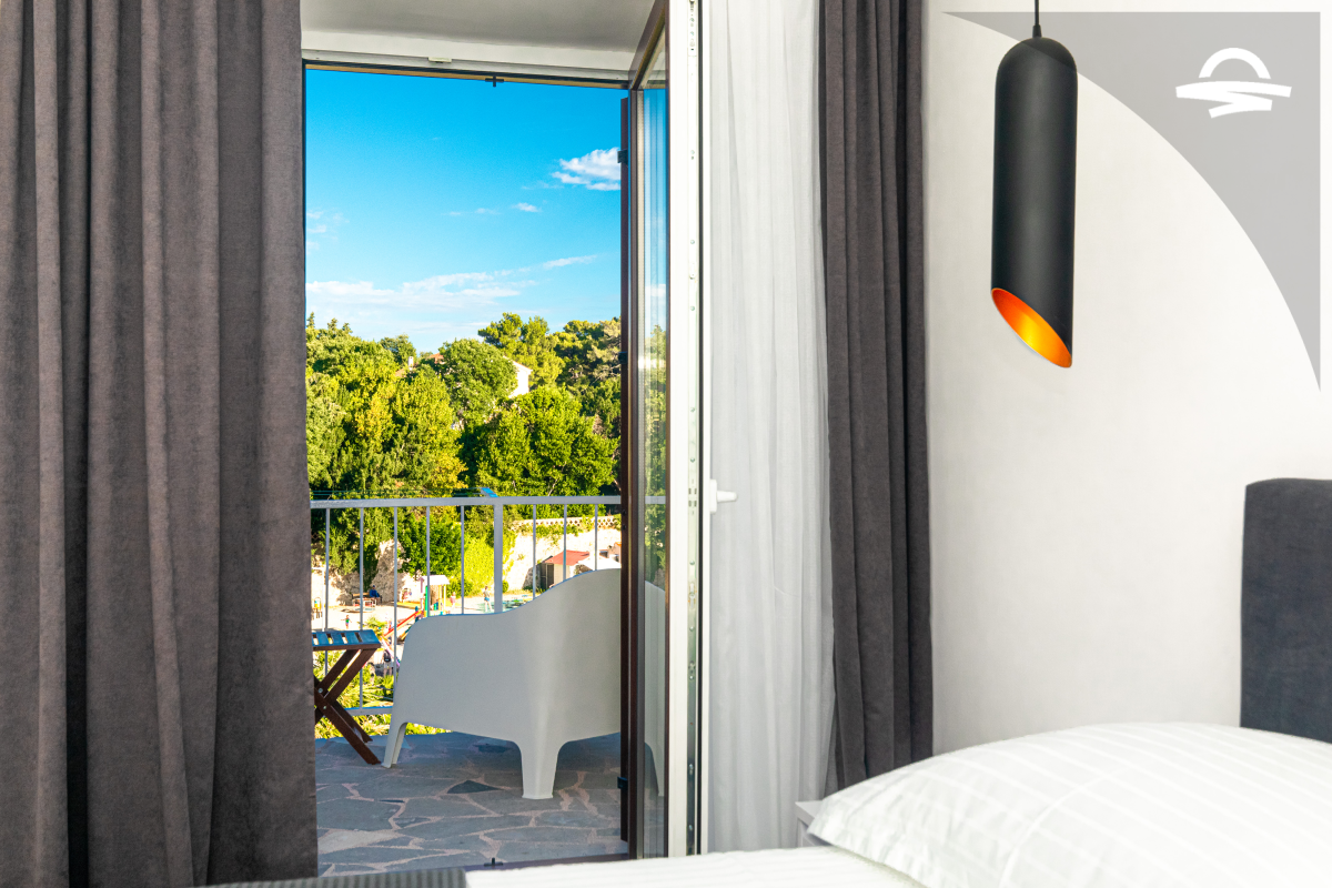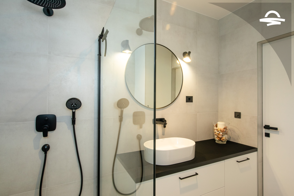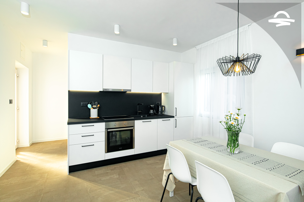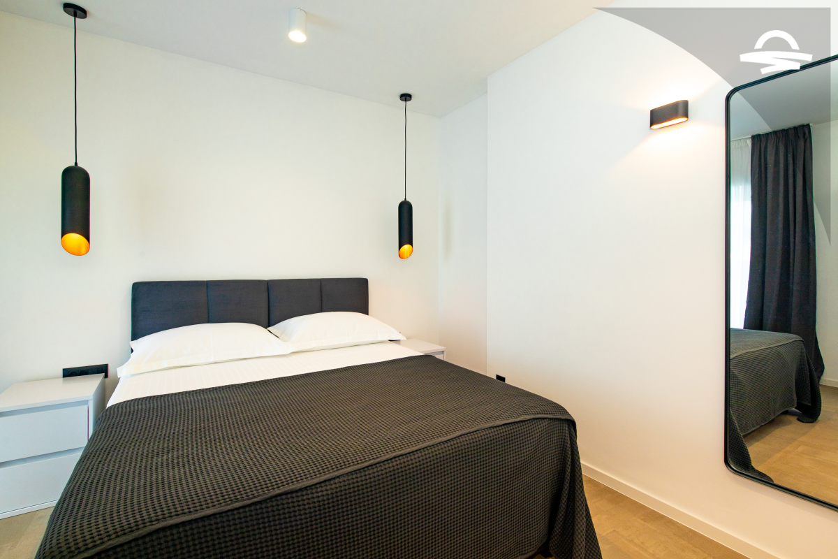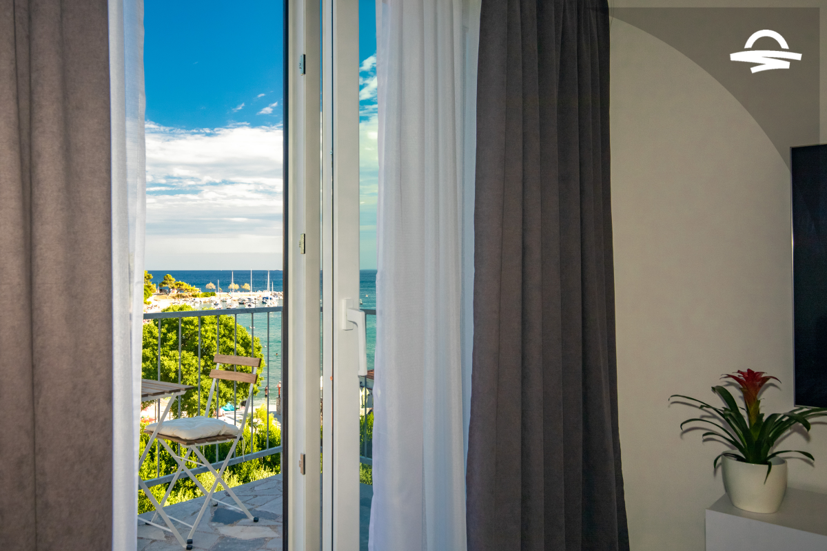 Die 50 m2 große Wohnung befindet sich im 1. Stock des Hauses und teilt sich in ein Schlafzimmer, ein Badezimmer mit Dusche und einen Wohnzimmer mit Küche auf. Vom Wohnbereich gelangt man auf den rund 11 m2 großen möblierten Balkon des Appartement von dem aus Sie eine fantastische Aussicht haben.