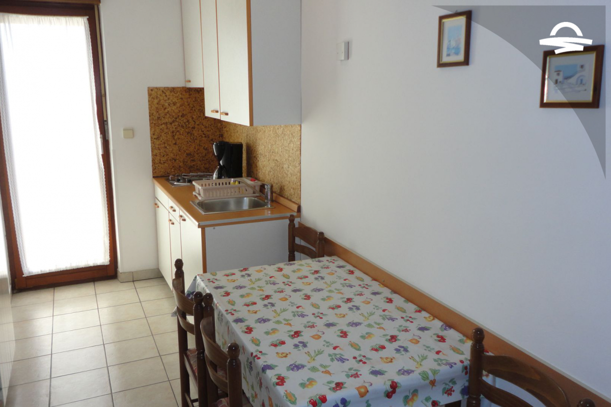Gepflegte und gut ausgestattete Wohnung Darko 3 liegt in der ersten Etage im Haus. Die Wohnung verfügt über 45 m2 und besteht aus einer Küche, zwei Schlafzimmer, ein Badezimmer mit Dusche und einen Balkon.