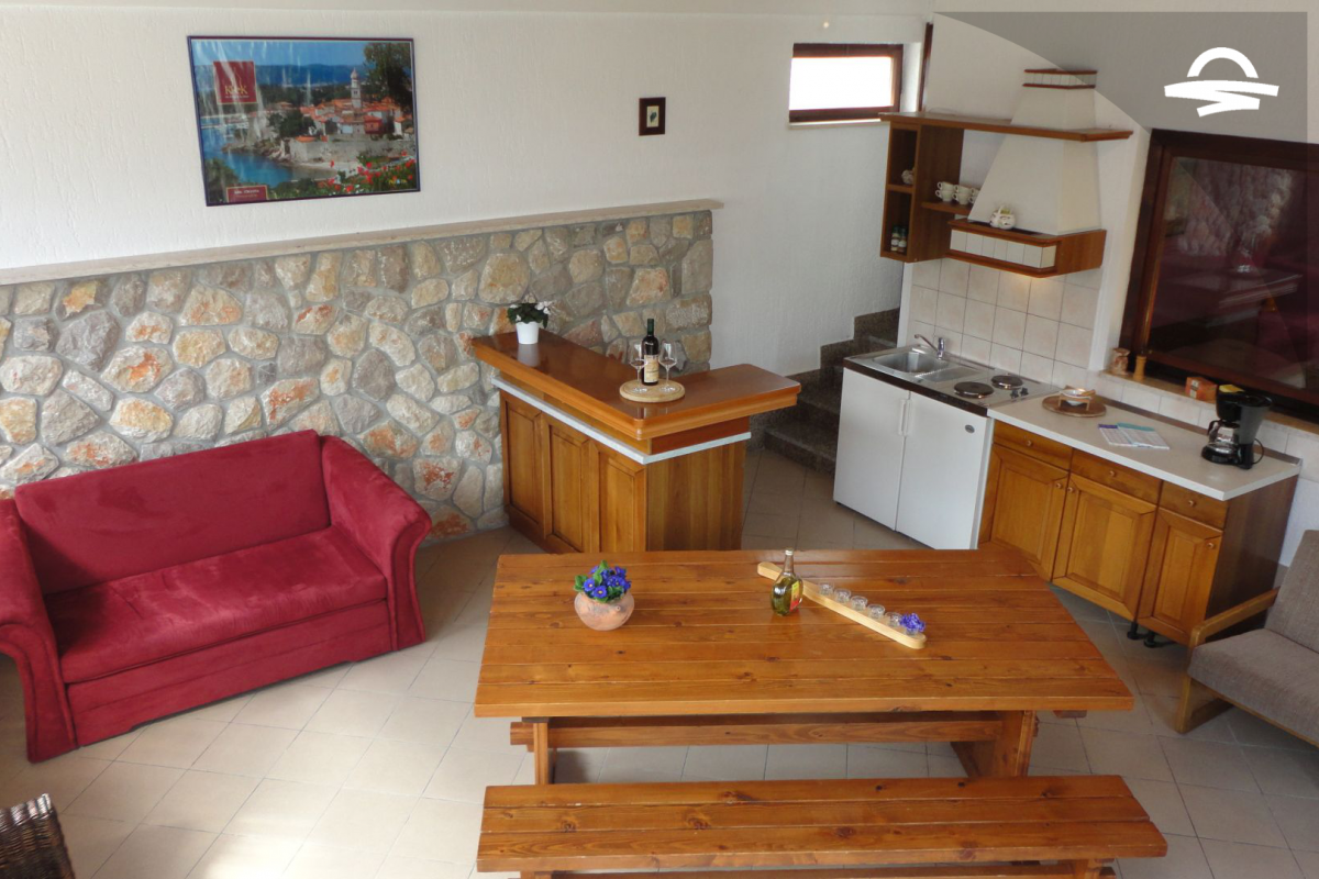 Geräumige Wohnung Darko 7 befindet sich im Erdgeschoss eines Privathauses und verfügt über 60 m2. Die Wohnung bietet Platz und Komfort für 2-4 Personen und besteht aus einer Küche und Wohnzimmer, ein Schlafzimmer, ein Badezimmer mit Dusche und eine Terrasse.