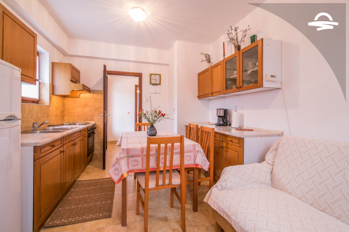 Gemütlich eingerichtete Wohnung Marinka K 2 liegt im Erdgeschoss eines Privathauses und verfügt über 65 m2. Die Wohnung besteht aus einer Küche mit Wohnzimmer, zwei Schlafzimmer, ein Badezimmer mit Badewanne und eine Terrasse. Diese gepflegte Wohnung bietet Platz und Komfort für 4 bis 5 Personen.