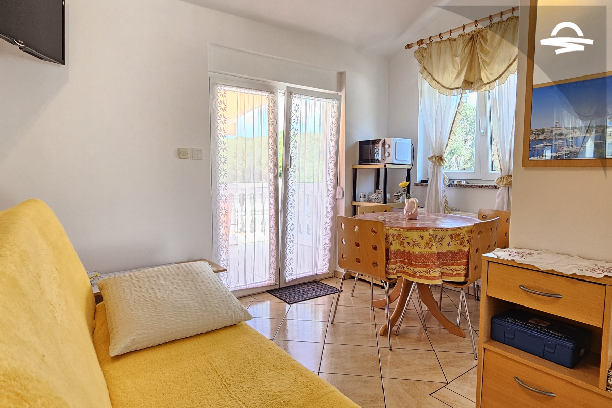 Die nett und neu eingerichtete Wohnung Marino 4 befindet sich in der ersten Etage im Haus. Die Wohnung verfügt über 50 m2 und besteht aus einer Küche und Wohnzimmer, zwei Schlafzimmer, ein Badezimmer mit Dusche und einen Balkon. Es ist für 4 bis 5 Personen ideal geeignet.