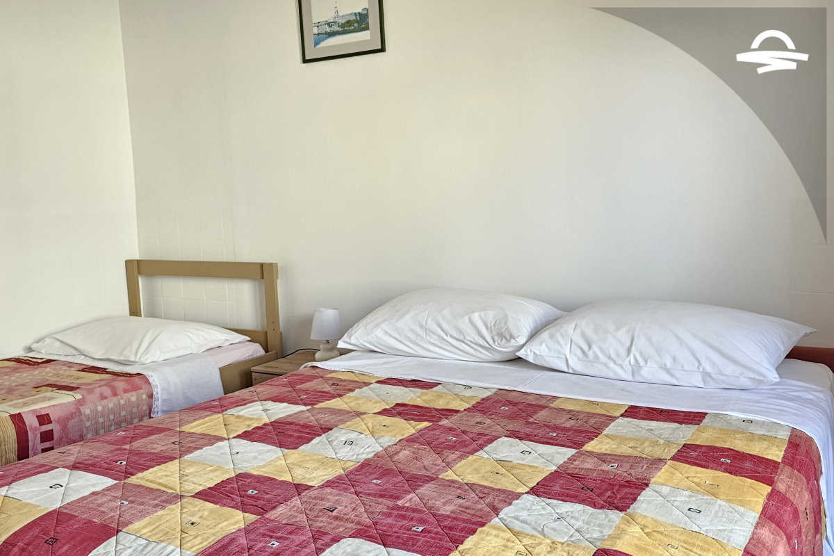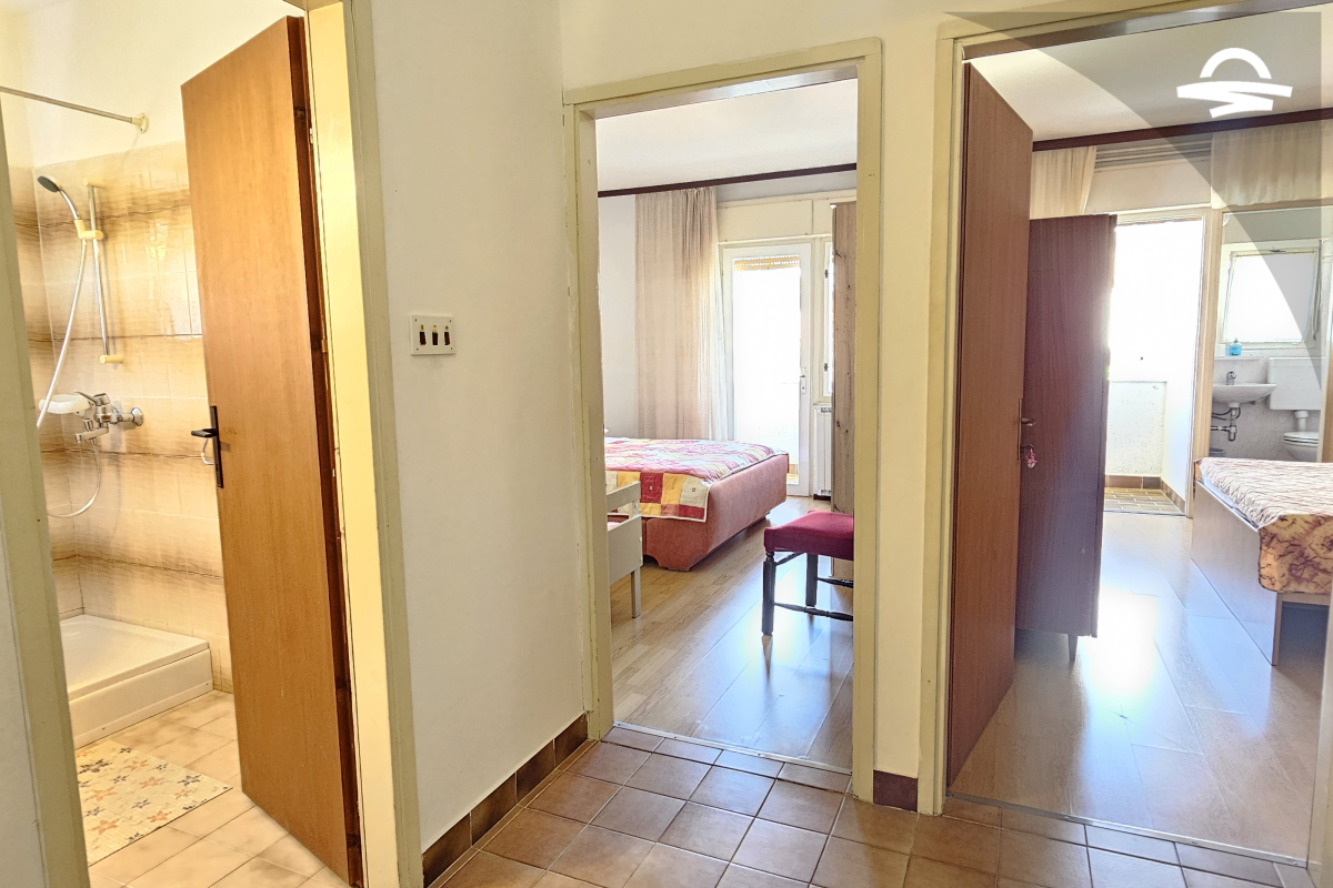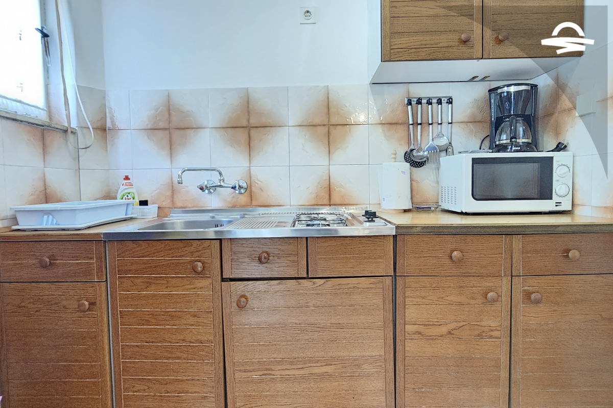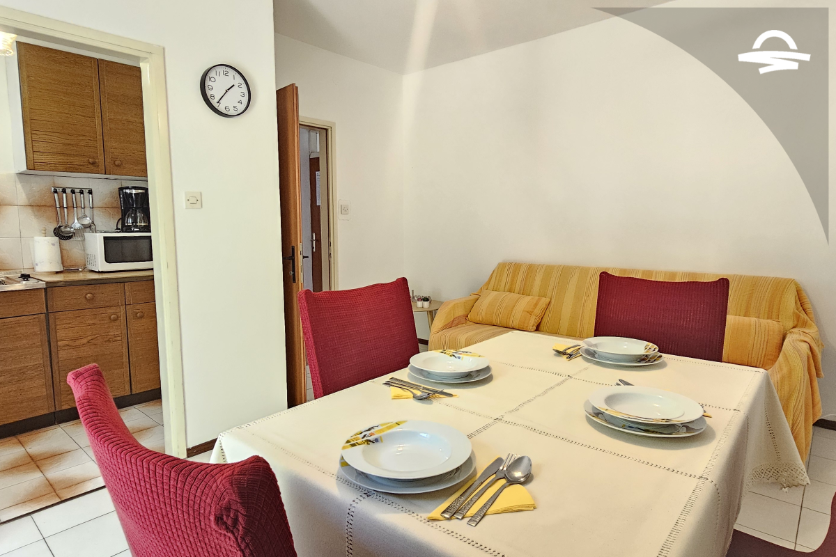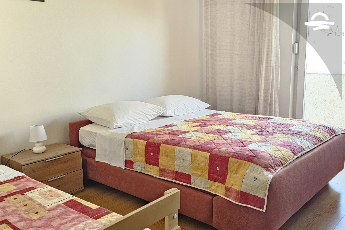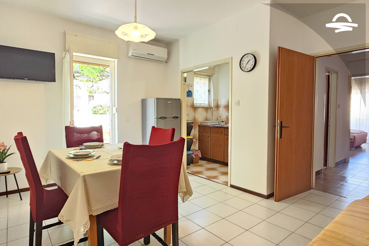 Einfach, aber gemütlich eingerichtete Wohnung Rudolf 3 befindet sich im Erdgeschoss eines Privathauses. Die Wohnung verfügt über 70 m2 und besteht aus einer Küche mit Wohnzimmer, zwei Schlafzimmer, zwei Badezimmer mit Dusche und eine Terrasse. Es ist für 4-5 Personen ideal geeignet.